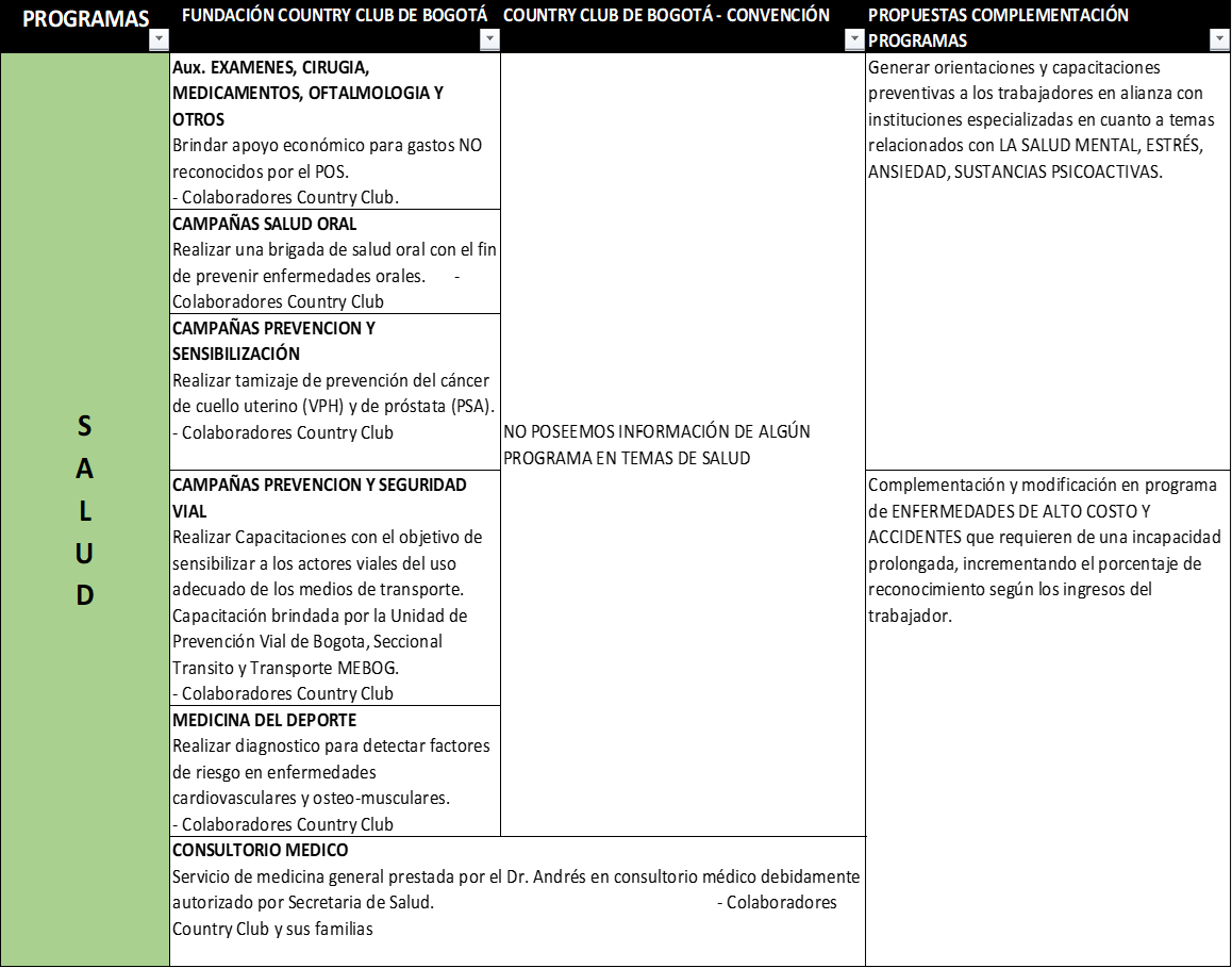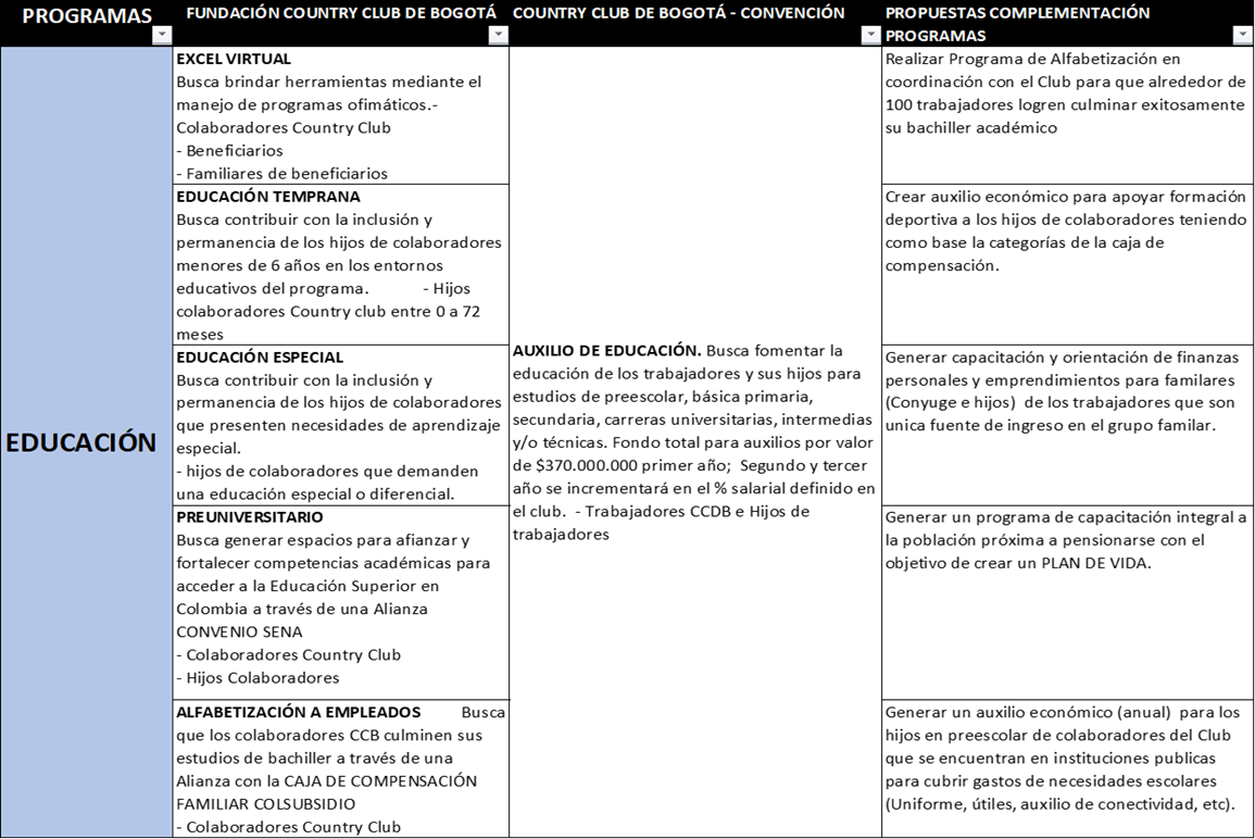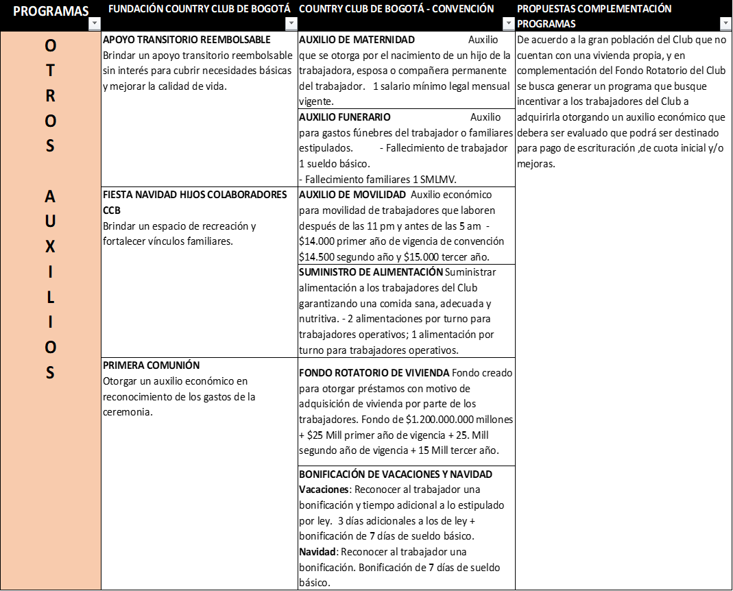 Los programas de apoyo a los empleados que complementan lo que ellos ya tienen por convención colectiva y por la fundación quedó así: