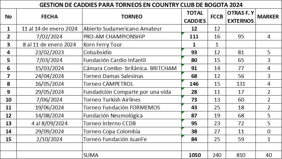 - Existe un acuerdo de servicios para el pago del salario del trabajador encargado de acompañar a los Caddies y jugadores golfistas y tenistas.